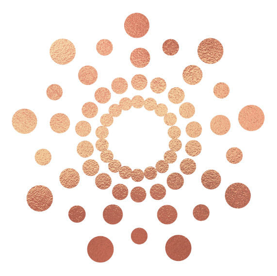 Un juego de tres tatuajes temporales de colores diferentes: dorado, plateado y cobre.