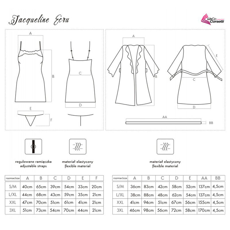 LIVCO CORSETTI FASHION - JACQUELINE LC 90249 BATA + CAMISA + PANTY CRUDO S/M